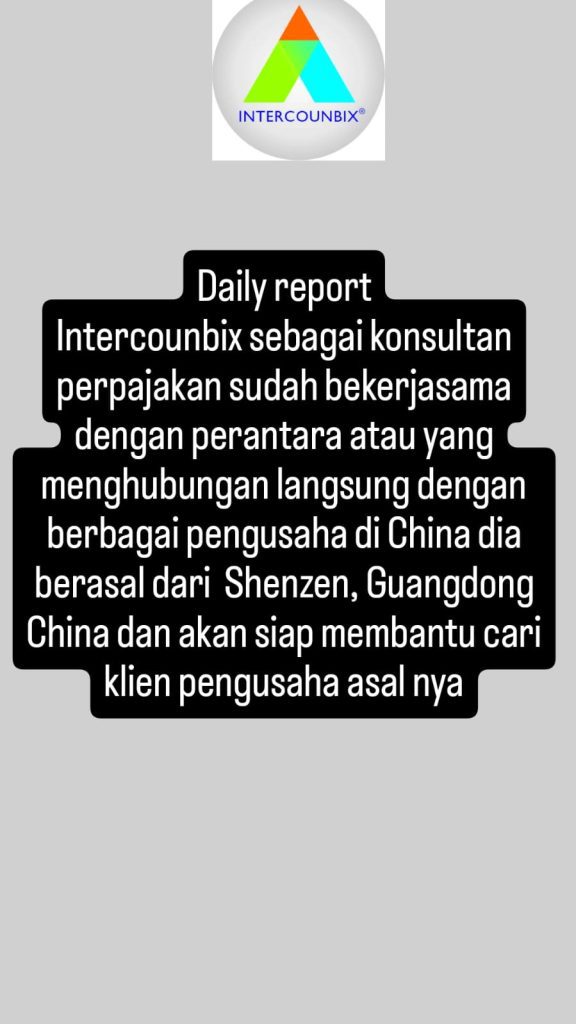 Intercounbix Sebagai Konsultan perpajakan sudah bekerjasama dengan perantara atau yang menghubungkan langsung dengan berbagai pengusaha di China dia berasal dari Shenzen, Guangdong China dan akan siap membantu cari klien di tempat berasalnya