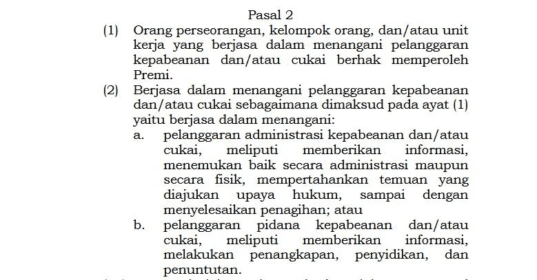 Kebijakan ini diatur dalam PMK Nomor 21/2024, revisi dari aturan sebelumnya, yang menjelaskan bahwa individu atau kelompok yang berjasa dalam penanganan pelanggaran bisa mendapat premi hingga 50% dari nilai denda, termasuk dari hasil lelang barang sitaan. Jumlahnya pun tak main-main—bisa tembus Rp1 miliar.